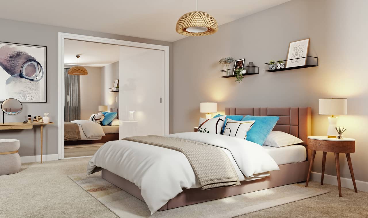To address these challenges, our visualisation studio employed a comprehensive set of services and techniques. We meticulously crafted exterior CGI shots of the marquee schemes, focusing on capturing the architectural details, landscaping, and vibrant community spaces. Additionally, we created dusk versions of the CGI shots, harnessing the power of lighting to enhance the impact and create an inviting atmosphere. For the interior CGI shots of the apartments, we went beyond merely showcasing the spaces. We developed an interactive slider that enabled prospective buyers to effortlessly switch between furnished and unfurnished versions of the rooms. This feature allowed potential residents to visualise the space with their personal touch and make informed decisions.